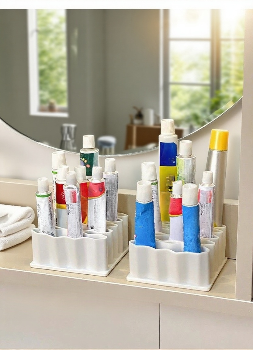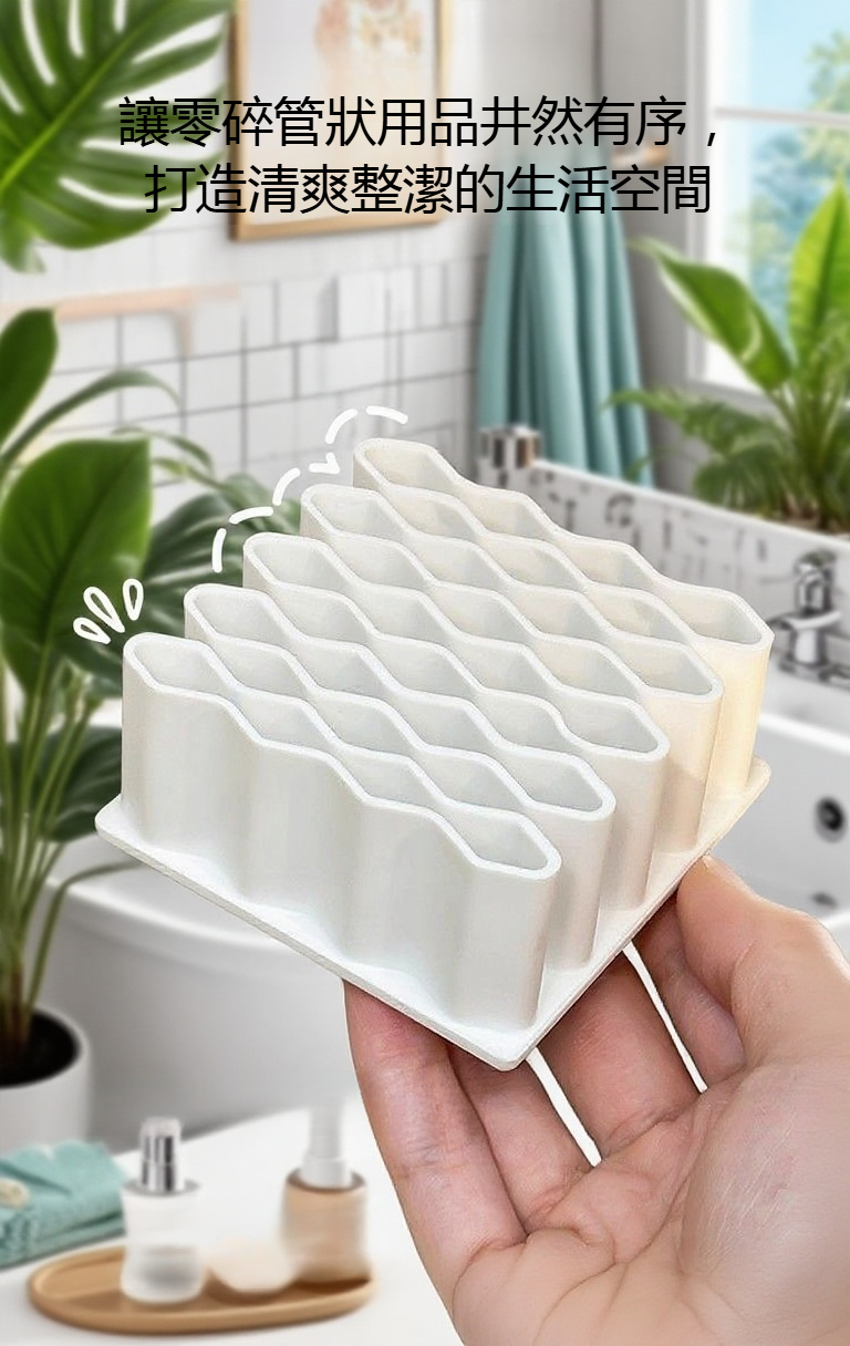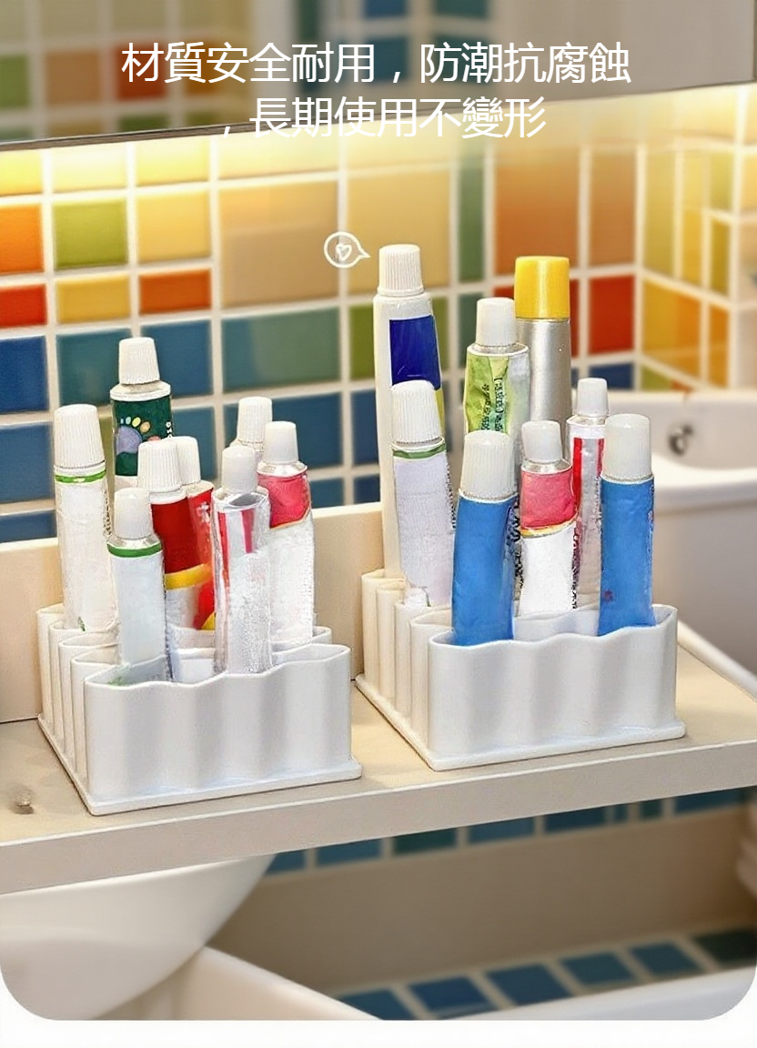 多功能分格設計,藥膏膠水收納整齊,節省空間,方便取用,適用浴室、廚房各種環境,耐用材質易清潔。