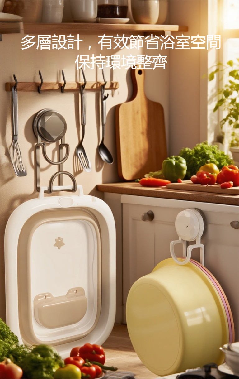加粗加厚吸盤設計,穩固收納臉盆不易掉落,免打孔安裝,適合多種牆面,節省空間,提升浴室整潔。